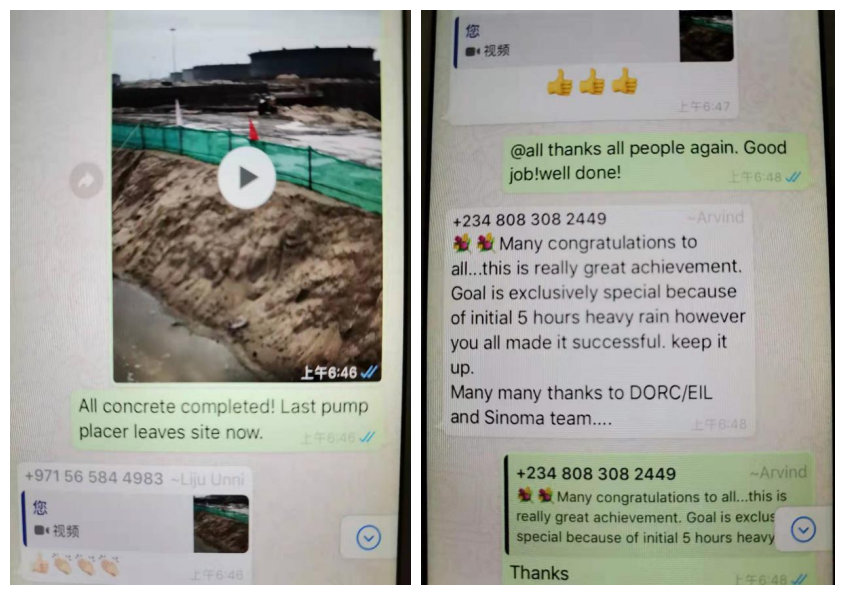 热烈祝贺尼日利亚炼油厂项目部混凝土浇筑量突破100万方。