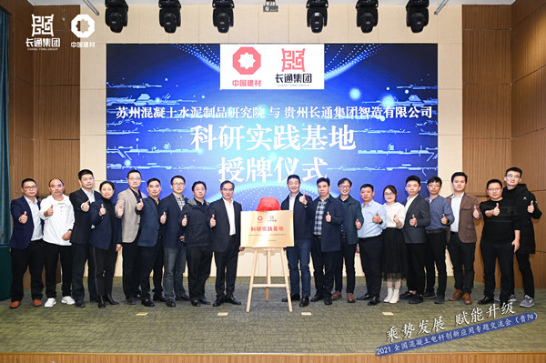 会议期间还举行了苏州混凝土院科研实践基地授牌仪式,苏州混凝土院总经理薛万银与贵州长通董事长张钊分别致词。苏州混凝土院在贵州长通设立科研实践基地,有助于双方在水泥混凝土制品等领域的科学研究、技术创新、产品开发、市场推广、人才培养等方面开展长期产学研合作,为科研转化提供一个更高、更广阔的平台。