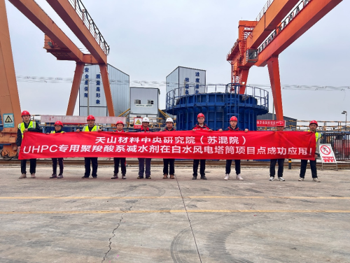 UHPC专用聚羧酸系减水剂在该风电塔筒项目的成功应用,标志着天山材料在化学建材领域实现了重大技术突破,充分展现了公司在提升建筑材料性能、促进行业绿色可持续发展的综合服务能力。